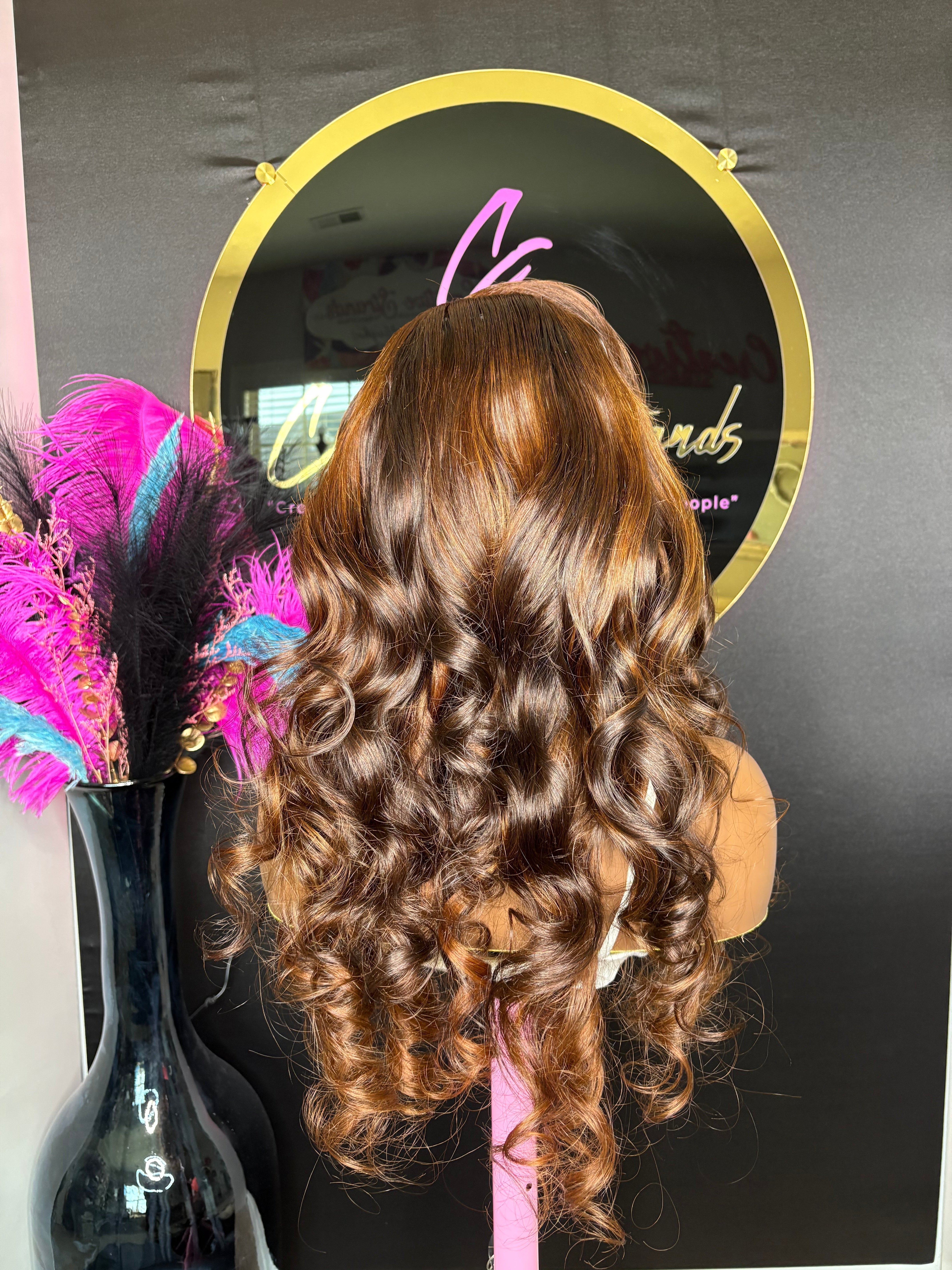 - Body wave hair 24" with brown base and brown highlights